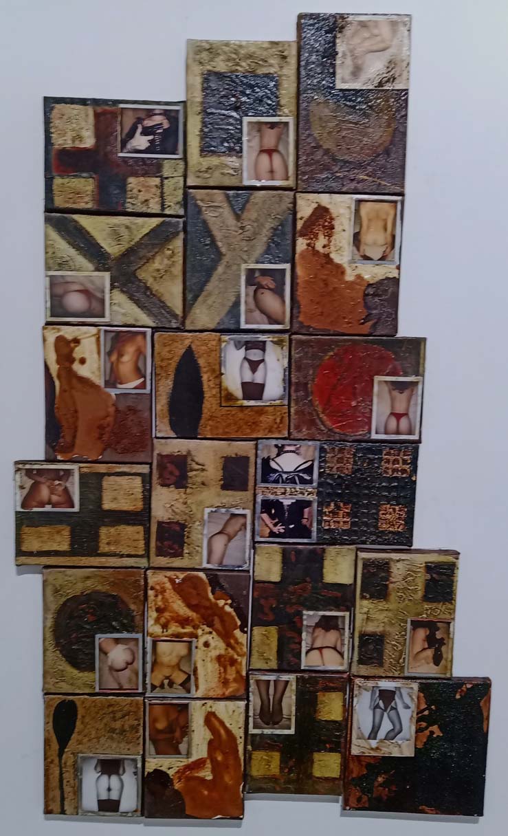 installation-polaroid et technique mixte sur toile